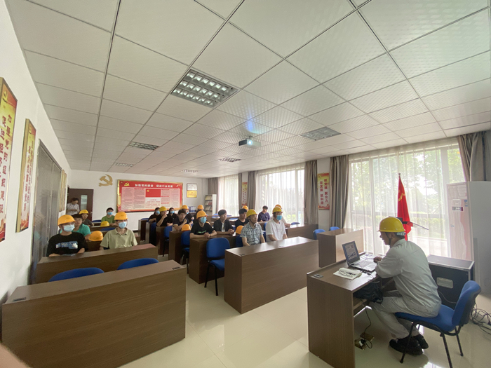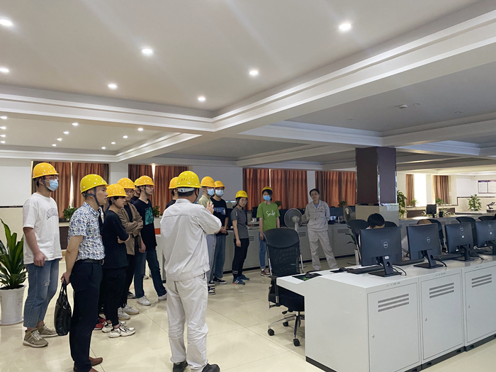 企業(yè)部長劉曉東詳細(xì)介紹了該公司基本概況、企業(yè)發(fā)展成果。還著重強(qiáng)調(diào)了化工企業(yè)安全生產(chǎn)注意事項(xiàng)和標(biāo)準(zhǔn),講解了危險化學(xué)品相關(guān)知識,明確了參觀過程中的注意事項(xiàng),介紹了生產(chǎn)園區(qū)的化工生產(chǎn)環(huán)節(jié)與各種設(shè)備。同時,中控室工作人員現(xiàn)場向?qū)W生展示中控系統(tǒng)作為生產(chǎn)環(huán)節(jié)“大腦”的重要作用及運(yùn)行原理。劉曉東與學(xué)生展開問答與討論,現(xiàn)場氛圍濃厚。