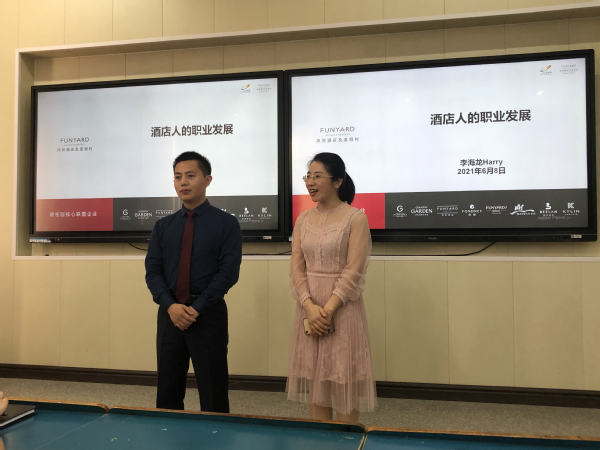 6月9日下午,安慶職業(yè)技術(shù)學(xué)院管理服務(wù)學(xué)院酒店管理專業(yè)2021年皖蘇學(xué)院“鳳翎”訂單班企業(yè)課堂在3號(hào)教學(xué)樓214教室正式開課。首次課程由碧桂園皖蘇區(qū)域運(yùn)營(yíng)總監(jiān)李海龍主講,管理服務(wù)學(xué)院李敏老師主持開課儀式,訂單班全體學(xué)員參加了學(xué)習(xí)。