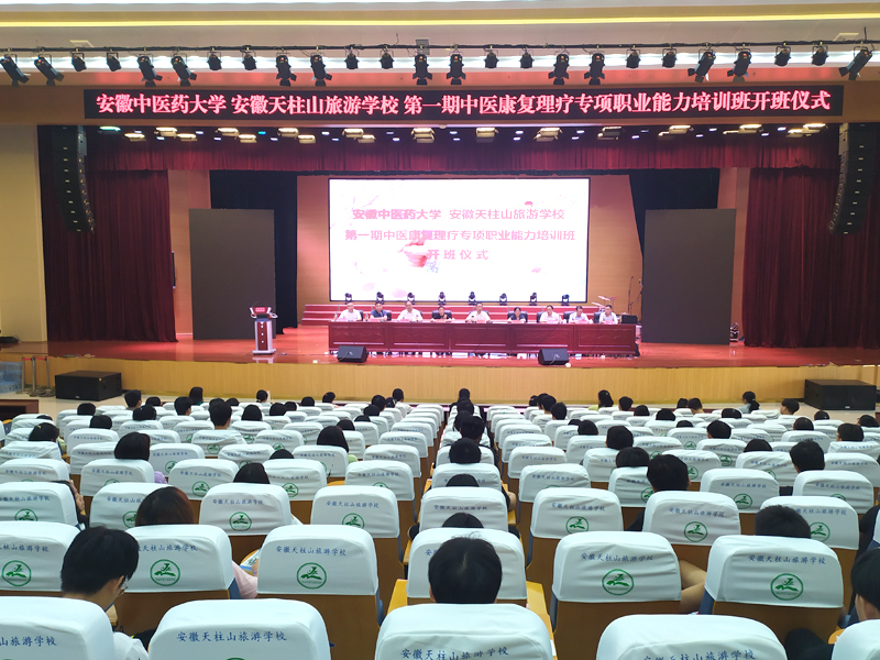 6月29日,安徽天柱山旅游學校與安徽中醫(yī)藥大學第一期中醫(yī)康復理療專項能力培訓班開班儀式在安徽天柱山旅游學校舉行。安徽中醫(yī)藥大學繼續(xù)教育學院院長方正清,安徽中醫(yī)藥大學針灸推拿學院副教授周傳云,安徽中醫(yī)藥大學繼續(xù)教育學院社會培訓部主任張曉峰,潛山市教育局黨委書記、局長石敬忠,潛山市教育局相關(guān)科室負責人出席開班儀式。旅游服務(wù)與管理專業(yè)2011班,制藥技術(shù)專業(yè)2016班全體學生共98人參加。