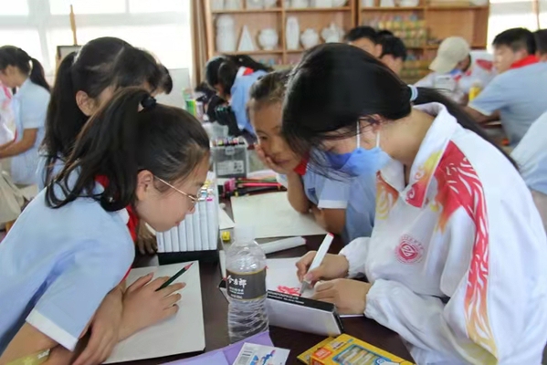 項目組一行在老峰鎮(zhèn)中心學(xué)校召開座談會,儲可可介紹了項目組成員、項目開展情況以及此次活動的方案、預(yù)期要達(dá)到的效果等。老峰鎮(zhèn)中心學(xué)校沈良順校長簡要介紹了老峰鎮(zhèn)中心學(xué)校校史、美術(shù)體育課程開設(shè)情況等。隨后,安慶職業(yè)技術(shù)學(xué)院藝術(shù)俱樂部部分優(yōu)秀學(xué)生深入課堂,給五、六年級學(xué)生開展繪畫、藝術(shù)體操等教學(xué)活動。