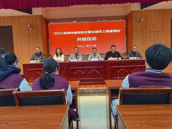 11月17日上午,安慶市建筑工程學校與綠地集團安慶置業(yè)有限公司校企合作舉辦的“2021級綠地集團安慶置業(yè)建筑工程管理班”開班儀式在C樓205隆重舉行。出席儀式的有綠地集團皖南區(qū)域總公司總經理張禮慶、總經理助理章興旺、辦公室主任邱誠呈和建校校長曹勁松、副校長周光純以及教務處主任陳尚志、職成處主任程學剛、該管理班全體同學,儀式由招生就業(yè)處主任張國祥主持。