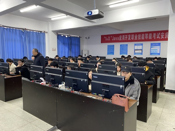 12月25日上午,“1+X”Java應(yīng)用開發(fā)職業(yè)技能等級(jí)證書考試在安慶職業(yè)技術(shù)學(xué)院圖文信息中心502實(shí)訓(xùn)室順利舉行,安慶職院副校長(zhǎng)譚維奇到考試到場(chǎng)巡視,實(shí)驗(yàn)實(shí)訓(xùn)中心主任李進(jìn)恩,信息技術(shù)學(xué)院院長(zhǎng)疏國(guó)會(huì)陪同。來自信息技術(shù)學(xué)院的55名考生參加了考試。