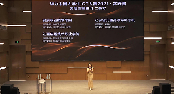 12月25日,由中國高等教育學(xué)會指導(dǎo)、華為技術(shù)公司主辦的,“華為中國大學(xué)生ICT大賽2021全國總決賽”頒獎典禮以在線的方式向全網(wǎng)直播。安慶職業(yè)技術(shù)學(xué)院信息技術(shù)學(xué)院選派的“高職云”賽道代表隊榮獲二等獎。