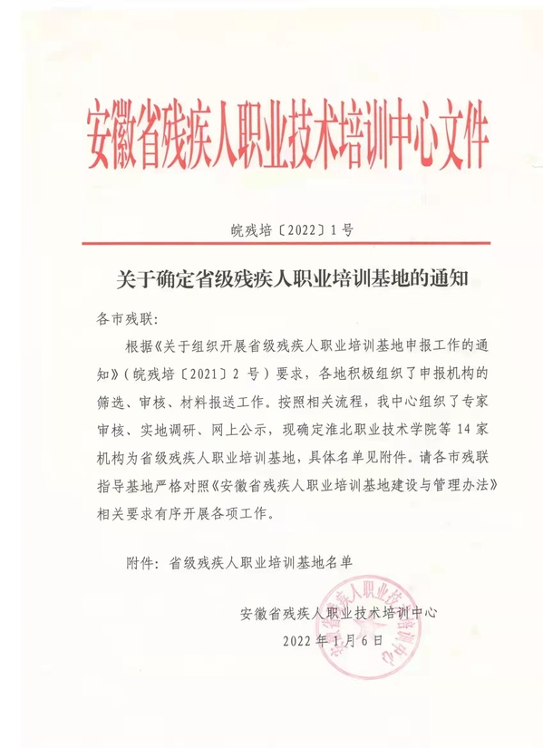 1月6日,安慶職業(yè)技術(shù)學(xué)院獲批省級殘疾人職業(yè)培訓(xùn)基地,這是安慶職院在培訓(xùn)基地建設(shè)方面又一重大成果。