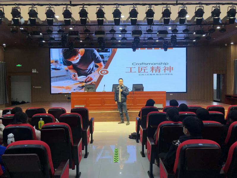 在安慶技師學(xué)院,潘華書老師《弘揚(yáng)工匠精神助力中國(guó)制造》的愛(ài)國(guó)主義宣講,激發(fā)現(xiàn)場(chǎng)同學(xué)們的廣泛共鳴。從“什么是家國(guó)情懷?”和“工匠如何踐行家國(guó)情懷?”,潘老師通過(guò)與大家現(xiàn)場(chǎng)討論交流,啟迪同學(xué)們的深深思考,大家都認(rèn)為最樸素的愛(ài)國(guó),就是每個(gè)人能夠在自己的工作崗位上做好自己,發(fā)光發(fā)熱。