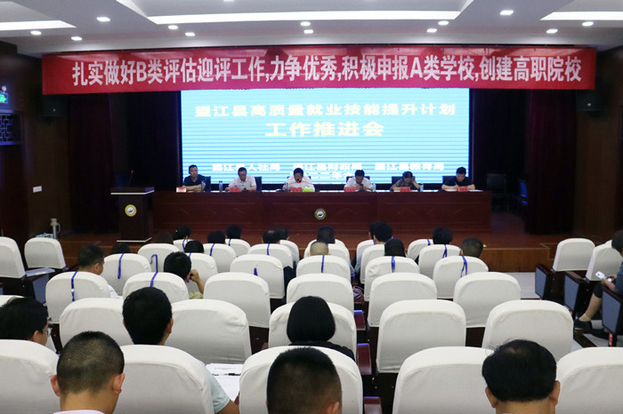 為貫徹習近平總書記大力發(fā)展技工教育重要指示精神,認真總結的經(jīng)驗,研判形勢、分析問題,堅定發(fā)展方向,深化改革落實,進一步推動縣域技工教育的發(fā)展,6月1日,望江縣人力資源和社會保障局、縣教育局、縣財政局聯(lián)合在望江縣勞動技工學校召開全縣高質(zhì)量就業(yè)技能提升計劃工作推進會??h委民生工程推進工作專班組長董開寶出席會議并講話,縣人社局黨組書記、局長王庭真,縣教育局黨委委員、副局長陳剛,縣人社局黨組成員、總經(jīng)濟師胡權兵,縣財政局社保股股長劉衛(wèi)君,縣人社局就業(yè)股股長、民生辦主任楊光,望江縣勞動技工學校董事長吳燦及各鄉(xiāng)鎮(zhèn)分管負責人參加會議。會議由縣人社局黨組書記、局長王庭真主持。