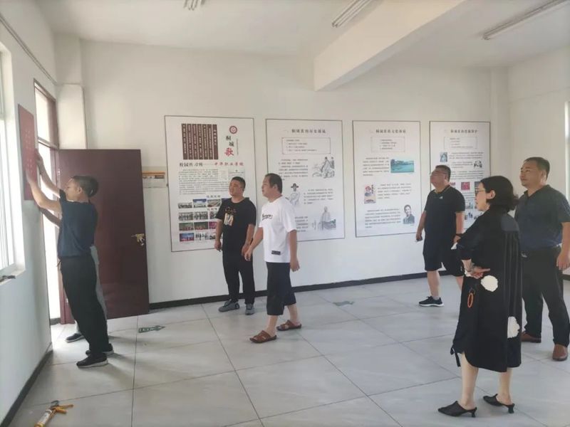 為進(jìn)一步深化校園傳習(xí)所傳承工作,市文化館和校方謀劃建設(shè)“國(guó)家級(jí)非遺《桐城歌》展館中華職校分館”,文化館(非遺保護(hù)中心)工作人員進(jìn)行實(shí)地考察勘測(cè)、擬定展覽內(nèi)容、融入多媒體展示、設(shè)計(jì)安裝展板等多個(gè)環(huán)節(jié),歷時(shí)三天完成展陳工作,于8月9日上午,由桐城市文化旅游體育局黨組書(shū)記、局長(zhǎng)吳方勝和校方特邀的學(xué)校創(chuàng)辦人徐智明老先生共同為展館揭牌。下一步,桐城市文化館和校方再度推進(jìn)非遺校園傳承工作,擬在校內(nèi)設(shè)立“桐城市非遺四級(jí)代表性傳承人工作室”,此項(xiàng)工作正在籌備中。