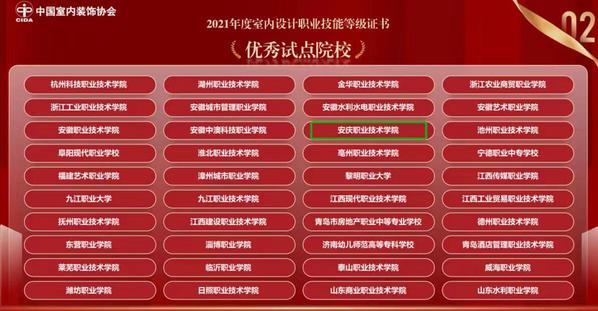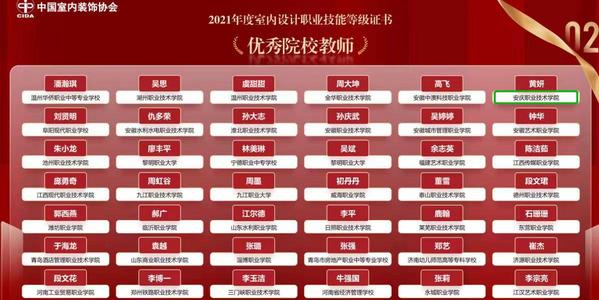 自接到比賽通知后,安慶職院高度重視,積極組建指導(dǎo)老師團(tuán)隊(duì),選拔參賽學(xué)生,制定訓(xùn)練方案,在比賽過程中,同學(xué)們充分發(fā)揮自己扎實(shí)的專業(yè)技能,攻堅(jiān)克難、沉著應(yīng)戰(zhàn),團(tuán)結(jié)協(xié)作,最終取得了全國(guó)三等獎(jiǎng)的好成績(jī)。比賽結(jié)束后,中國(guó)室內(nèi)裝飾協(xié)會(huì)對(duì)2021年度“1+X(室內(nèi)設(shè)計(jì))”證書試點(diǎn)工作中表現(xiàn)突出的優(yōu)秀院校代表和教師個(gè)人進(jìn)行了表彰。學(xué)校在2021至2022學(xué)年的室內(nèi)設(shè)計(jì)“1+X”證書考核中,初級(jí)通過率達(dá)到96%,中級(jí)通過率達(dá)到100%,高級(jí)通過率達(dá)到100%,在此次表彰中獲得2021年度“1+X(室內(nèi)設(shè)計(jì))”證書優(yōu)秀試點(diǎn)院校,指導(dǎo)老師黃妍獲“優(yōu)秀院校教師”稱號(hào)。