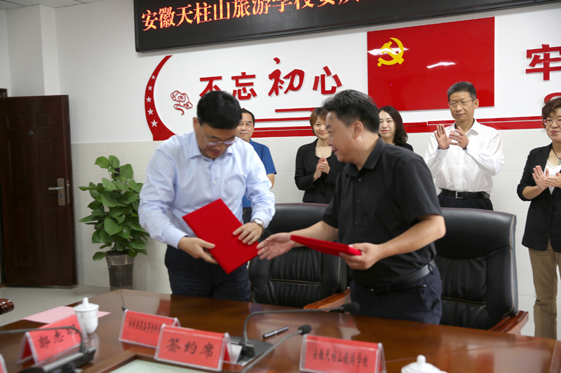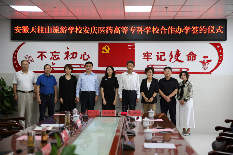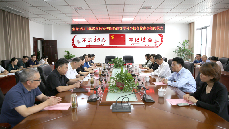 9月28日下午,安徽天柱山旅游學(xué)校與安慶醫(yī)藥高等??茖W(xué)校合作辦學(xué)簽約儀式在安徽天柱山旅游學(xué)校舉行。安慶醫(yī)藥高等專科學(xué)校黨委副書記、校長姚文兵,黨委委員、副校長朱慶豐,潛山市副市長章瑩出席簽約儀式,潛山市教育局黨委書記、局長石敬忠主持儀式。
