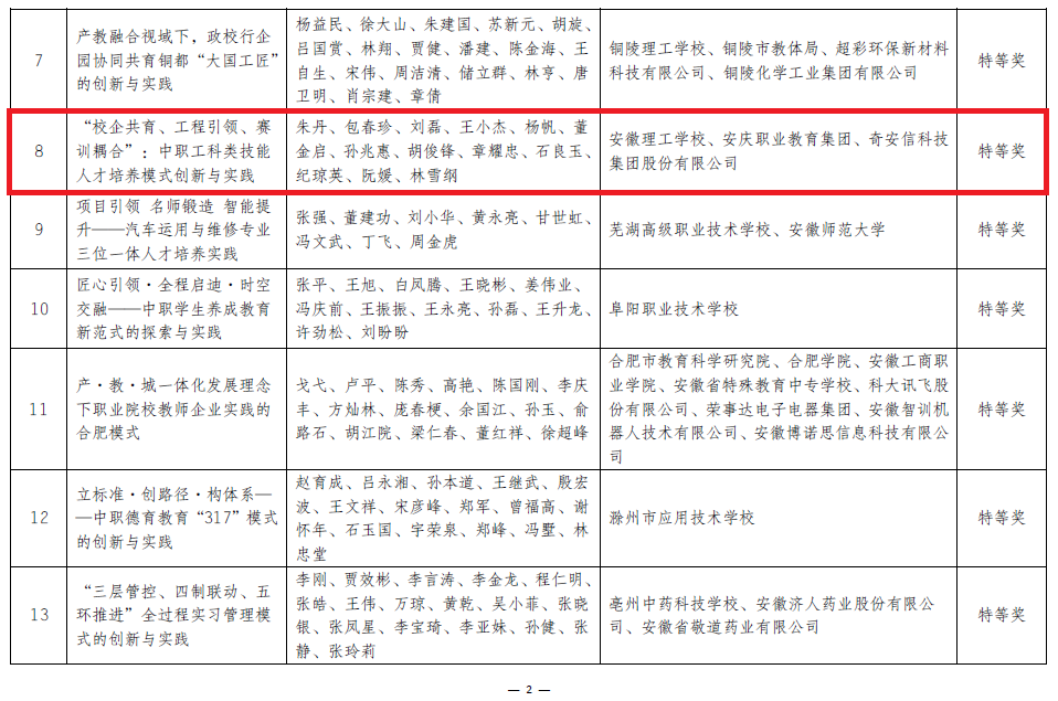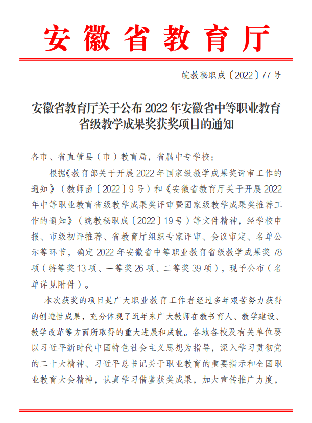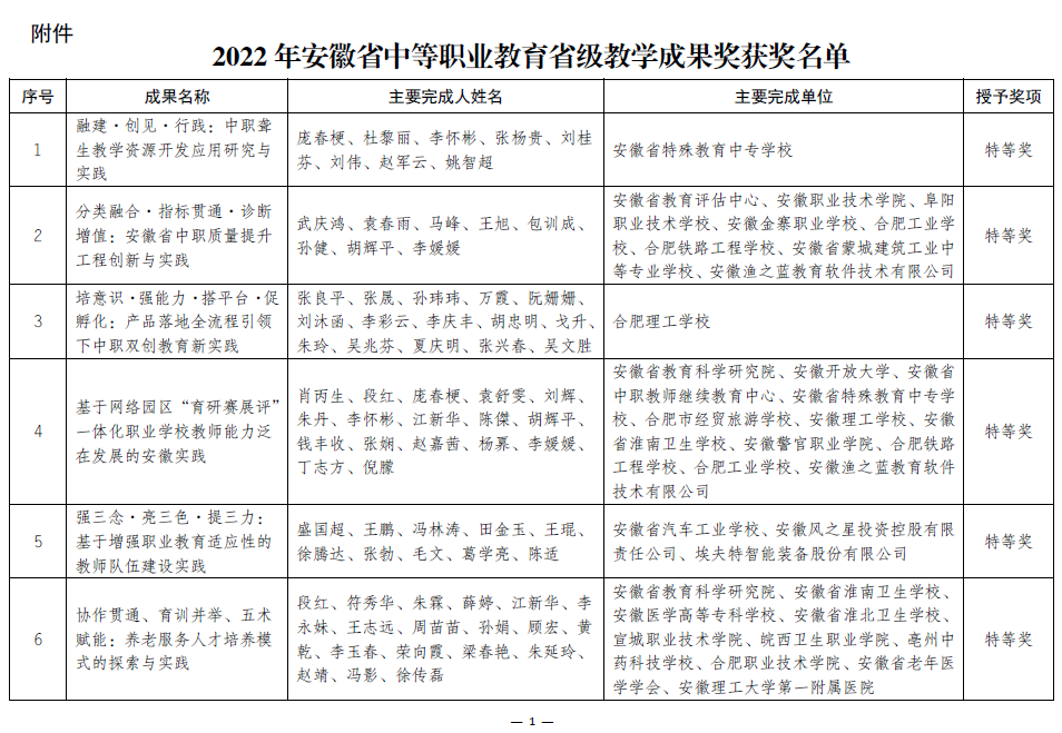 集團(tuán)成員學(xué)校獲得2022年安徽省教學(xué)成果獎(jiǎng)特等獎(jiǎng)、一等獎(jiǎng)