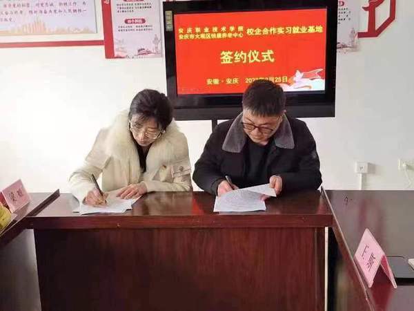 隨后,校企雙方共同簽署了《校企合作實(shí)習(xí)就業(yè)教研基地合作協(xié)議書(shū)》,校企雙方領(lǐng)導(dǎo)共同為“安慶職業(yè)技術(shù)學(xué)院校外實(shí)習(xí)就業(yè)基地”揭牌。
