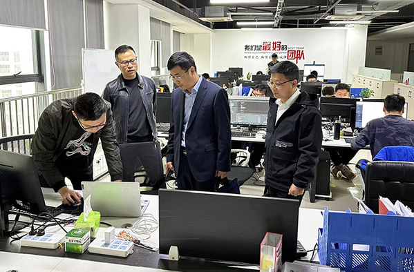 在安徽峰速網(wǎng)絡(luò)智能科技有限公司走訪調(diào)研中,疏國(guó)會(huì)一行在董事長(zhǎng)余賢良的陪同下詳細(xì)了解了該公司的發(fā)展歷程、企業(yè)文化、企業(yè)運(yùn)營(yíng)等情況,參觀了項(xiàng)目研發(fā)現(xiàn)場(chǎng),并與研發(fā)人員就技術(shù)、人才和市場(chǎng)等方面進(jìn)行了交流。