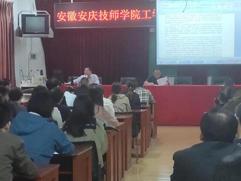 為進一步推動學校工學一體化教學改革,扎實提升學校教育教學質量,5月24日,安慶技師學院召開了工學一體化改革工作會議,會議由徐波副院長主持,學院全體教師參加會議。