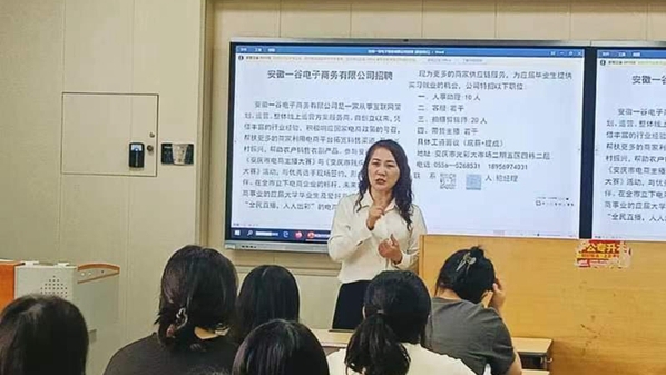 5月31日下午,安慶職業(yè)技術(shù)學(xué)院現(xiàn)代商務(wù)學(xué)院舉辦2024屆電子商務(wù)專業(yè)畢業(yè)生校園專場招聘會。