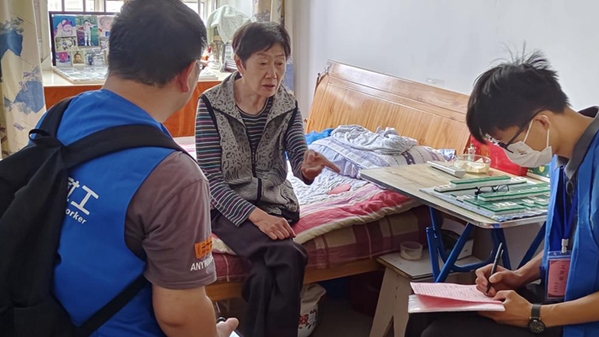 社區(qū)工作人員帶領(lǐng)志愿者們來(lái)到順安南苑小區(qū)獨(dú)居老人的家中進(jìn)行慰問(wèn),查看居住環(huán)境、排查安全隱患,并對(duì)于老人的生活需求、身體健康情況,進(jìn)行詳細(xì)的詢(xún)問(wèn)及記錄。