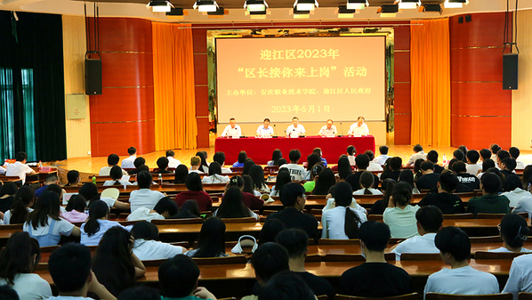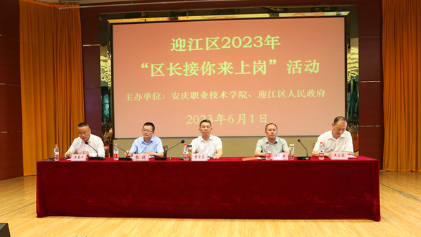 就本次活動,童宏葵用了“五個夠”進行了概括。一是活動品牌“夠響的”。這個活動的主題原本是“區(qū)長喊你來上崗”,區(qū)長把“喊”改為“接”,一字之改,體現(xiàn)了“四高”:政治站位高,是尊重技能型人才、重視職業(yè)教育的誠意體現(xiàn);文字水平高,“接你”二字把區(qū)長內(nèi)心對人才的渴望、尊重和誠意表達的淋漓盡致;人才地位高,目前學校2023屆畢業(yè)生就業(yè)率已達到70%,超過全省高職院校平均水平;辦學質(zhì)量高,說明學校畢業(yè)生素質(zhì)高,干得好,企業(yè)搶著要,區(qū)長很滿意。去年的此項活動還受到《中國日報》等主流媒體的報道。二是學校工作“夠拼的”。學校始終秉持市屬高校這一基本屬性,最大限度地為本地企業(yè)輸送高質(zhì)量的技術技能人才,工作中我們做到了“專業(yè)跟著產(chǎn)業(yè)走、教學追著企業(yè)跑、教師圍著學生轉、工作對著指標干、服務隨著政策調(diào)”,本地就業(yè)率實現(xiàn)了逐年提高。三是學校實力“夠強的”。今年以來,學校又取得一系列標志性成果,首批國家級職業(yè)教育教師教學創(chuàng)新團隊通過驗收;斬獲金磚國家技能發(fā)展與技術創(chuàng)新大賽全國一等獎;“定向人才培養(yǎng)培訓項目”和“就業(yè)實習基地項目”就業(yè)育人項目獲得教育部立項;獲批安徽省“三教”改革示范校等等。四是安慶市“夠美的”。安慶又名宜城,宜城就是宜居、宜業(yè)、宜家的寓意。所謂宜居,就是安慶位于長江之濱,氣候宜人,風景秀美,交通便利;所謂宜業(yè),就是指安慶作為安徽省重要的石油化工、汽車零部件制造和紡織加工業(yè)基地,被省列為皖江開發(fā)的重點開放城市之一,2016年5月又被列入長三角城市群,社會經(jīng)濟事業(yè)有了突飛猛進的發(fā)展,潛力巨大,商機無限;所謂宜家,就是這里人文薈萃,底蘊深厚,房價不高,工資不低。正所謂才到安慶更有戲!五是迎江區(qū)“夠棒的”。迎江區(qū)是安慶市城市建設“東進”主戰(zhàn)場,也是安慶市跨江聯(lián)動戰(zhàn)略的承接地,是安慶未來發(fā)展的著力點、新增點、閃光點和興奮點。上個月在市雙招雙引“三看三比”第一季度巡回檢查總結點評會上,迎江區(qū)順利實現(xiàn)“開門紅”。不僅“紅榜有名”,而且“榜榜有名”。迎江區(qū)的秦潭湖裝備制造園、新能源配套產(chǎn)業(yè)園等園區(qū),展現(xiàn)了迎江雄厚的企業(yè)風采,打造了“迎江品牌”;衡川公司鋰離子電池隔膜生產(chǎn)項目3月份在迎江開工,總投資110億元,實現(xiàn)了迎江區(qū)百億級工業(yè)項目“零”的突破,為安慶市新能源汽車千億產(chǎn)業(yè),貢獻了“迎江力量”;這個項目推進速度快,從簽約到開工僅用時89天,彰顯了“迎江速度”。我們和迎江區(qū)是連環(huán)體,迎江的快速發(fā)展,將對技能型人才的需求與日俱增,也為同學們提供了優(yōu)質(zhì)多多的就業(yè)崗位。