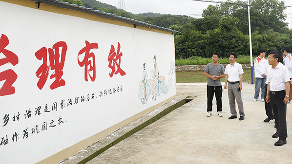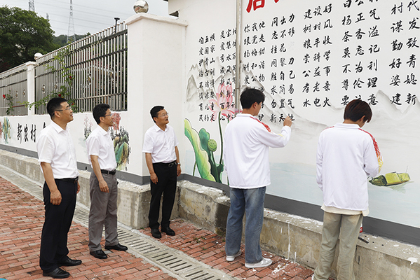 畢明生一行沿著修整一新的鄉(xiāng)間小路,看著周邊白凈的墻面上一幅幅生動的手繪畫面,聽著參與繪畫的師生的細(xì)致介紹,不時(shí)獲得沿途村民滿意的贊賞,對付出辛勤勞動的師生和創(chuàng)作成果給予了充分肯定。
