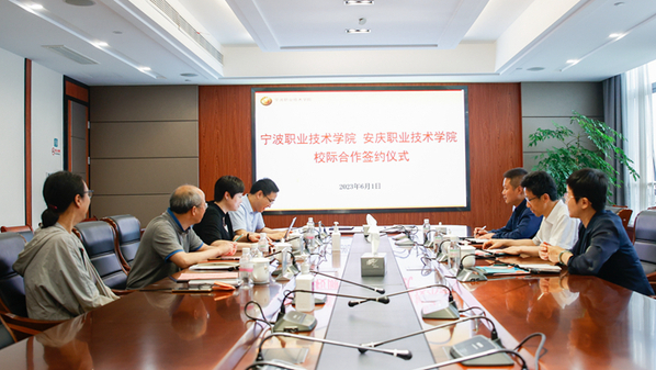 根據(jù)安慶職業(yè)技術(shù)學(xué)院黨委安排,經(jīng)過(guò)前期深入對(duì)接,6月1日下午,校長(zhǎng)畢明生赴甬與寧波職業(yè)技術(shù)學(xué)院校長(zhǎng)吳翔陽(yáng)簽署校際合作協(xié)議。安慶職院黨委委員、組織部長(zhǎng)、人事處長(zhǎng)高潤(rùn)霞陪同。