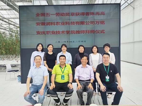 為深入推進(jìn)教師隊(duì)伍建設(shè)工作,創(chuàng)新“師帶徒”方式,安慶職業(yè)技術(shù)學(xué)院農(nóng)林與服裝學(xué)院組織開展“名師導(dǎo)師帶徒”工作。4月24日,農(nóng)林與服裝學(xué)院黨總支書、院長李進(jìn)恩帶領(lǐng)植物保護(hù)與檢疫和園藝技術(shù)專業(yè)團(tuán)隊(duì)教師在安徽潤科農(nóng)業(yè)科技有限公司向全國五一勞動獎(jiǎng)?wù)芦@得者陳再高和安徽潤科農(nóng)業(yè)科技有限公司副總經(jīng)理萬銘拜師。