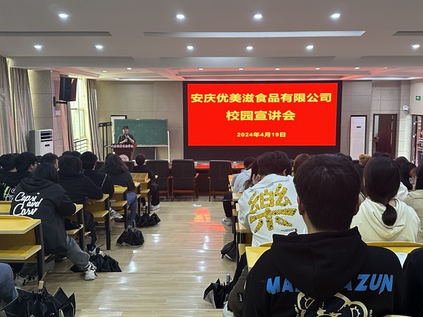 安慶職業(yè)技術(shù)學(xué)院農(nóng)林與服裝學(xué)院:舉辦安慶優(yōu)美滋食品有限公司專場(chǎng)宣講會(huì)