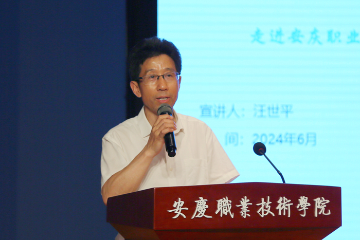 在同學(xué)們熱烈的掌聲中,汪世平作了主題為“這里是迎江,歡迎來迎江”的講話。這句話不僅表達(dá)了對迎江區(qū)的自豪感,也向在場的所有人,特別是安慶職業(yè)技術(shù)學(xué)院的畢業(yè)生們,傳達(dá)了開放包容、期待人才加入迎江區(qū)大家庭的信息。他說迎江是一座蓬勃發(fā)展的實(shí)力之城,迎江區(qū)綜合競爭力位居全省市轄區(qū)第3名,中國500強(qiáng)的超威、投資超百億的衡川、全省民營企業(yè)100強(qiáng)的運(yùn)通達(dá)都深耕在迎江;他說迎江是一座蓬勃發(fā)展的實(shí)力之城,人才政策“再”加持,休閑配套“超”豐富,提供多項(xiàng)就業(yè)創(chuàng)業(yè)補(bǔ)貼和就業(yè)創(chuàng)業(yè)服務(wù)。3年來,超過4600名大專以上的人才扎根迎江,超過150名安職院畢業(yè)生留在迎江,歡迎同學(xué)們落戶迎江、服務(wù)迎江、扎根迎江。