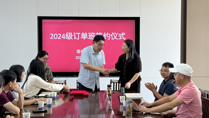 金啟勝和學(xué)生代表分別與汪義德、楊根蓮簽訂了24級“工學(xué)一體”云霽電商班、24級“工學(xué)一體”云霽跨境電商班、24級“工學(xué)一體”協(xié)成會計班的訂單班三方協(xié)議。簽約儀式之后,雙方圍繞人才培養(yǎng)、實訓(xùn)場地建設(shè)、學(xué)生實習(xí)實踐等內(nèi)容進(jìn)行座談交流。(文、圖:楊 燦 審稿:余 瑰)