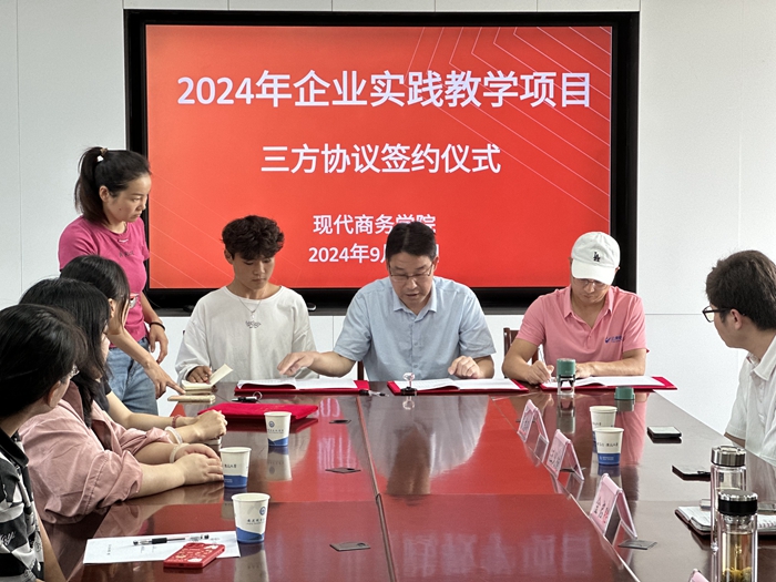 9月25日,安慶職業(yè)技術(shù)學(xué)院現(xiàn)代商務(wù)學(xué)院與安徽云霽電子商務(wù)有限公司的2024年學(xué)生電商客服崗位實訓(xùn)教學(xué)項目簽約儀式在學(xué)校3號教學(xué)樓510會議室舉行。云霽電商公司總經(jīng)理汪義德及公司相關(guān)領(lǐng)導(dǎo),現(xiàn)代商務(wù)學(xué)院黨總支書記、院長金啟勝,該院學(xué)生工作負(fù)責(zé)人,電子商務(wù)專業(yè)負(fù)責(zé)人、跨境電子商務(wù)專業(yè)負(fù)責(zé)人以及相關(guān)班級輔導(dǎo)員和學(xué)生代表參加簽約儀式,會議及儀式由該院教學(xué)工作負(fù)責(zé)人主持。