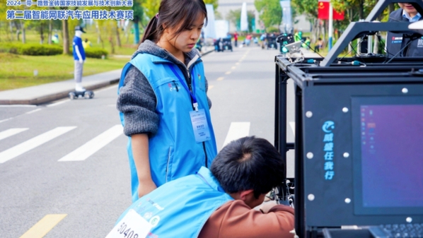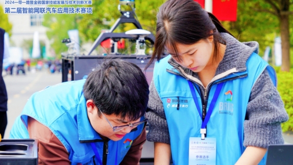 大賽首日,新能源汽車仿真賽項拉開帷幕。參賽選手們需要在限定時間內(nèi),通過計算機(jī)仿真技術(shù)模擬新能源汽車的運(yùn)行狀態(tài),對車輛性能進(jìn)行仿真分析和優(yōu)化。次日,新能源汽車裝調(diào)賽項火熱進(jìn)行,該賽項要求選手們對智能網(wǎng)聯(lián)汽車進(jìn)行細(xì)致的裝配、調(diào)試和標(biāo)定,確保車輛各項功能正常運(yùn)行。大賽最后一天,車路協(xié)同賽項成為焦點。該賽項要求選手在規(guī)定時間內(nèi)完成智能路側(cè)端設(shè)備的安裝、調(diào)試、通信連接、故障排除。張晴晴和彭耀祥展現(xiàn)出卓越的技術(shù)水平和團(tuán)隊協(xié)作能力,精心裝配,耐心調(diào)試,確保每一環(huán)節(jié)都達(dá)到最佳狀態(tài)。