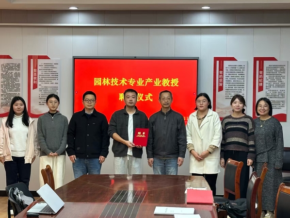 會上,胡海峰接受了該院頒發(fā)的產(chǎn)業(yè)教授聘書,并表示感謝。他分享了對產(chǎn)業(yè)教授職責(zé)的理解與工作規(guī)劃。他結(jié)合自身豐富的行業(yè)經(jīng)驗,現(xiàn)場提出了可供教學(xué)團隊合作的橫向課題方向。同時,他針對當(dāng)前行業(yè)用人需求,為學(xué)生技能提升和競業(yè)能力提供了寶貴建議。他表示,將積極搭建校企合作的橋梁,全力推動科研合作與人才培養(yǎng)的深度融合,為園林專業(yè)的發(fā)展貢獻產(chǎn)業(yè)力量。