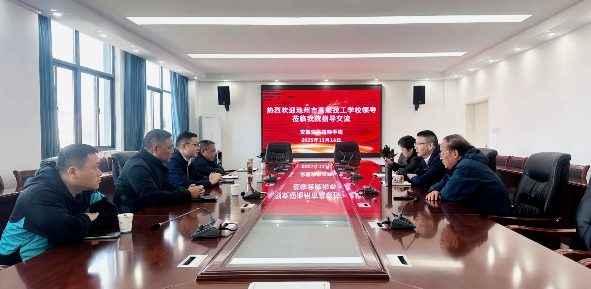 2025 年 11 月 14 日上午,池州市貴池區(qū)委組織部副部長、區(qū)人才工作局副局長張兆軍,貴池區(qū)人社局黨組成員、副局長陳家友,池州市高級技工學(xué)校副書記(主持行政工作)倪佩文,該校培訓(xùn)處主任桂林、汽修專業(yè)教師錢鵬飛一行5人蒞臨安徽安慶技師學(xué)院,就技工教育發(fā)展開展專題交流指導(dǎo)。安徽安慶技師學(xué)院黨委副書記、院長徐英武,黨委委員、副院長徐波,黨委委員張蕾熱情接待并召開座談會。