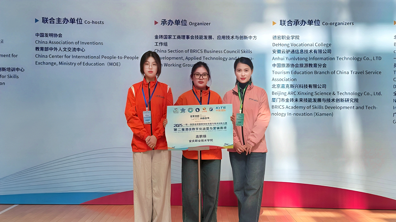 近期,2025年“一帶一路”暨金磚國家技能發(fā)展與技術(shù)創(chuàng)新大賽“酒店數(shù)字化運營與營銷”“幼兒照護”賽項全國總決賽相繼落幕,安慶職業(yè)技術(shù)學院學子憑借扎實的專業(yè)功底、出色的實踐能力與創(chuàng)新思維,取得佳績。