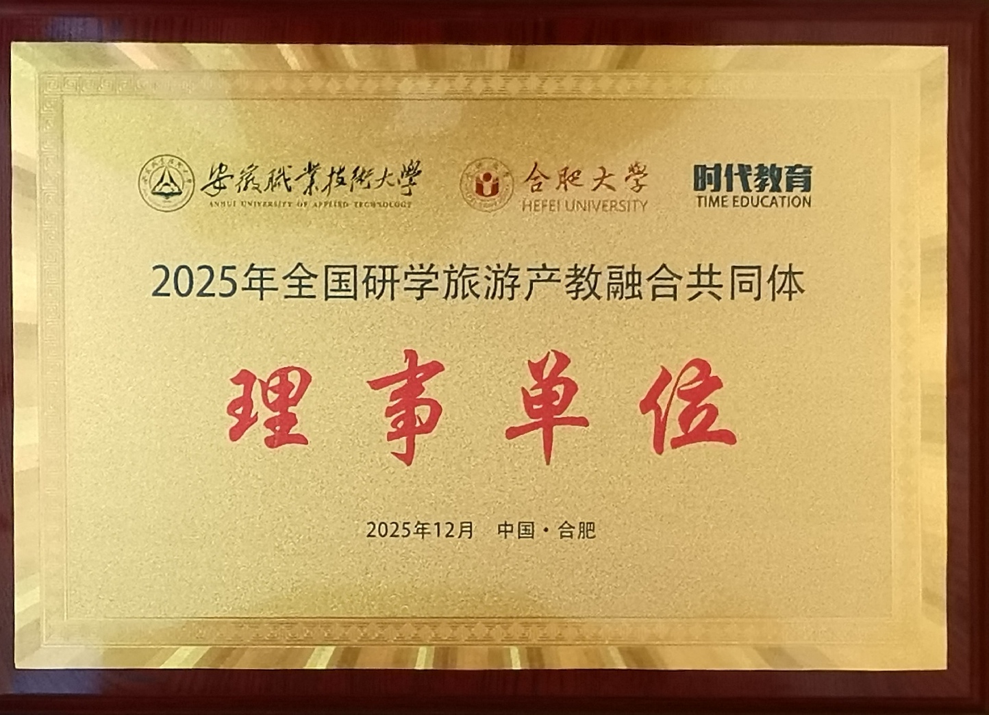 大會由安徽省教育廳、安徽省文化和旅游廳指導,全國研學旅游產(chǎn)教融合共同體主辦,安徽職業(yè)技術大學、合肥大學、安徽時代教育發(fā)展有限公司聯(lián)合承辦。大會吸引了來自全國的頂尖院校、文旅領軍企業(yè)、行業(yè)智庫及主管部門代表近400人齊聚一堂,共商研學旅游產(chǎn)教融合高質(zhì)量發(fā)展大計。大會現(xiàn)場表決通過了《全國研學旅游產(chǎn)教融合共同體章程》,正式確定第一屆理事會組織架構名單,舉行了莊重的啟動儀式及授牌環(huán)節(jié)。會上,學校入選理事單位,并接受授牌。