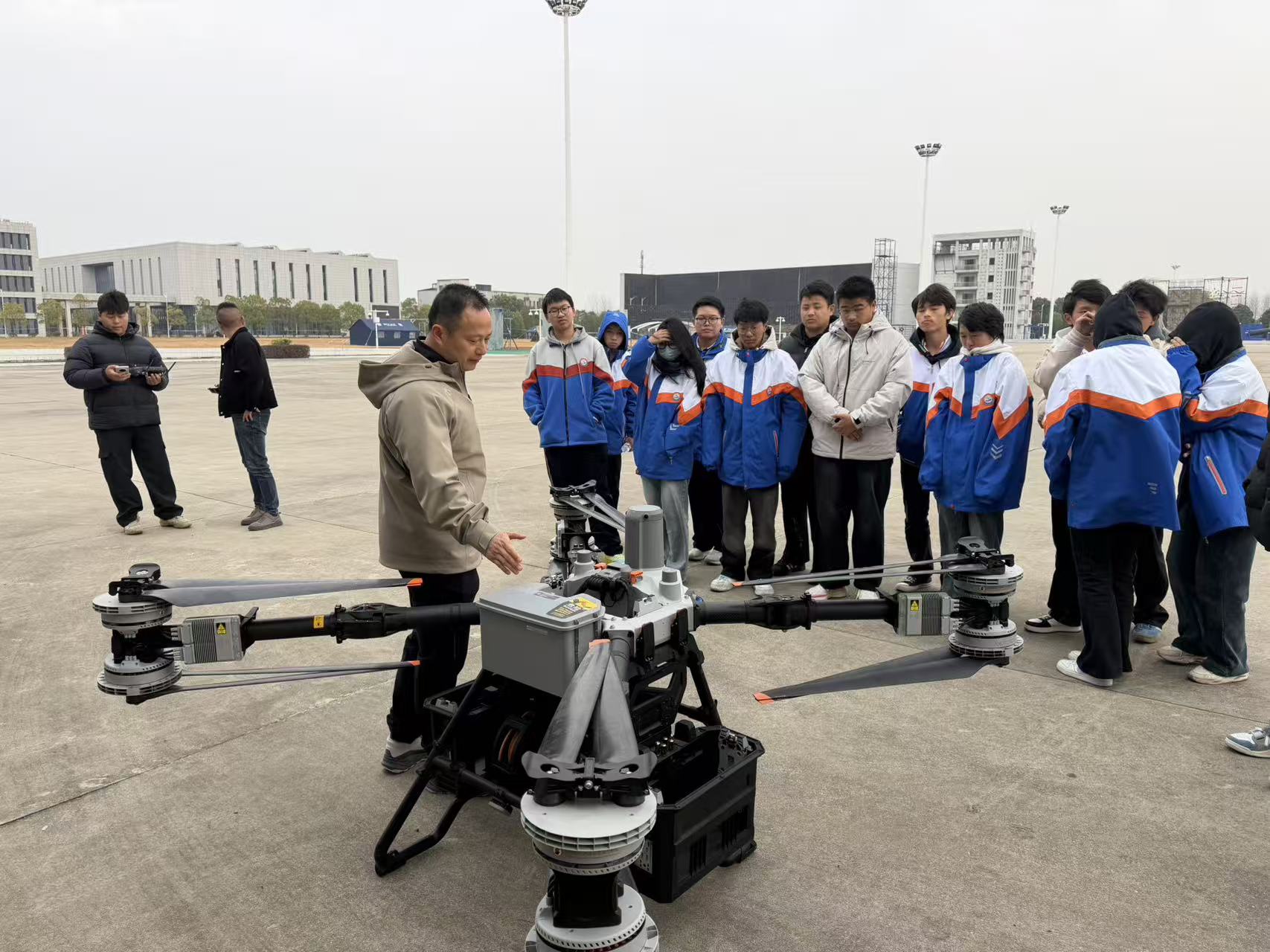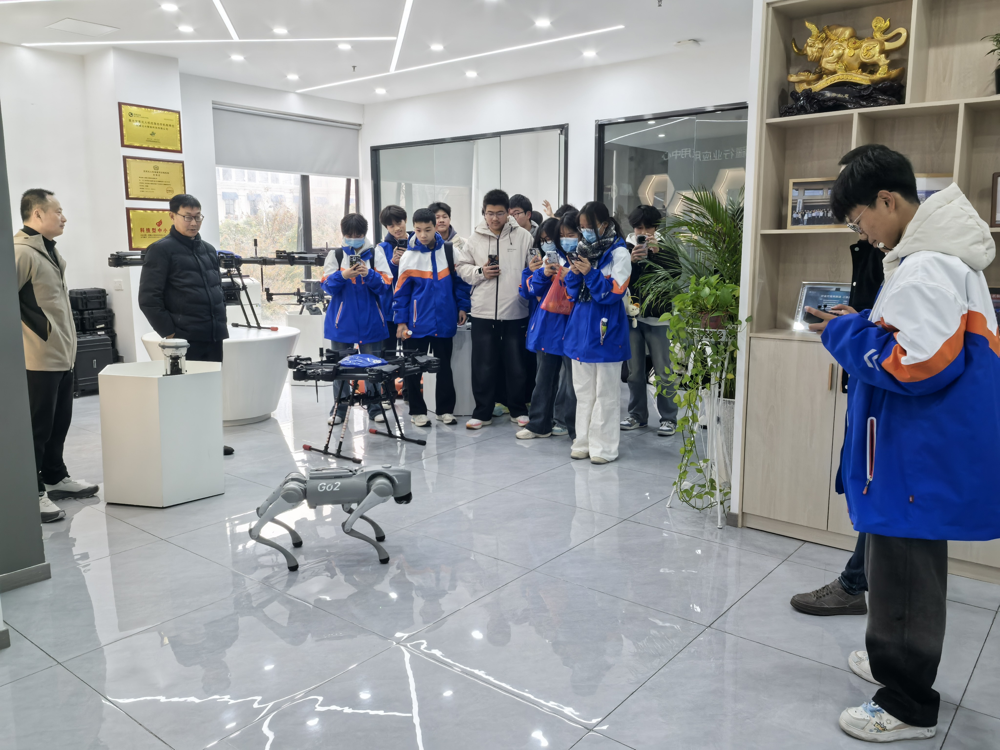 12月12日,太湖職業(yè)技術(shù)學(xué)校組織2025級無人機(jī)專業(yè)師生走進(jìn)大疆行業(yè)應(yīng)用、北斗智航公司,開展一場理論性與實(shí)操性的“無人機(jī)+行業(yè)應(yīng)用”實(shí)踐教學(xué)活動,沉浸式解鎖“無人機(jī)+”前沿科技教學(xué)。學(xué)校政教處主任方明華率隊(duì),無人機(jī)專業(yè)班主任萬家兵、相關(guān)專業(yè)課教師、以及無人機(jī)專業(yè)班級學(xué)生30余名師生代表參加活動。